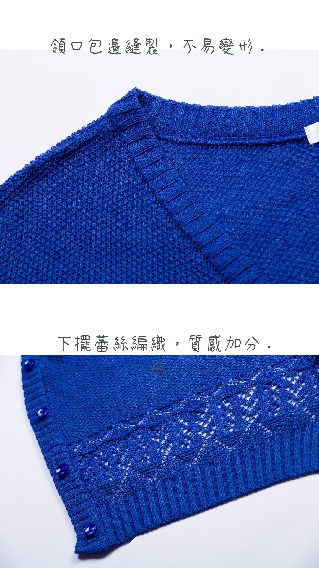 • 上衣運用立體織紋設計,整體感覺細緻均勻,袖口與下擺小挑洞編織,輕鬆穿搭出層次感。