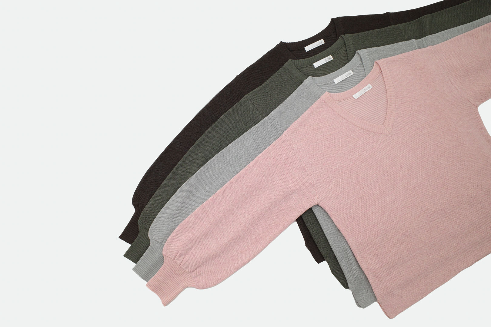 •使用細針距(12針)雙層吊目編織,有別於一般細針針織衫大多使用單層編織,我們讓衣服外觀更立體而不會厚重,近年台灣秋冬偏暖,這個厚薄度,非常適合陪伴妳整個秋冬。