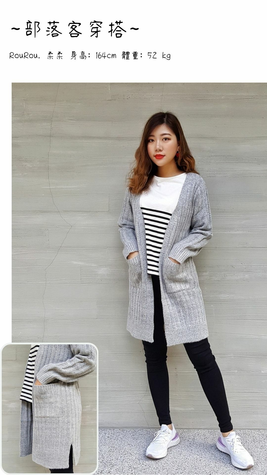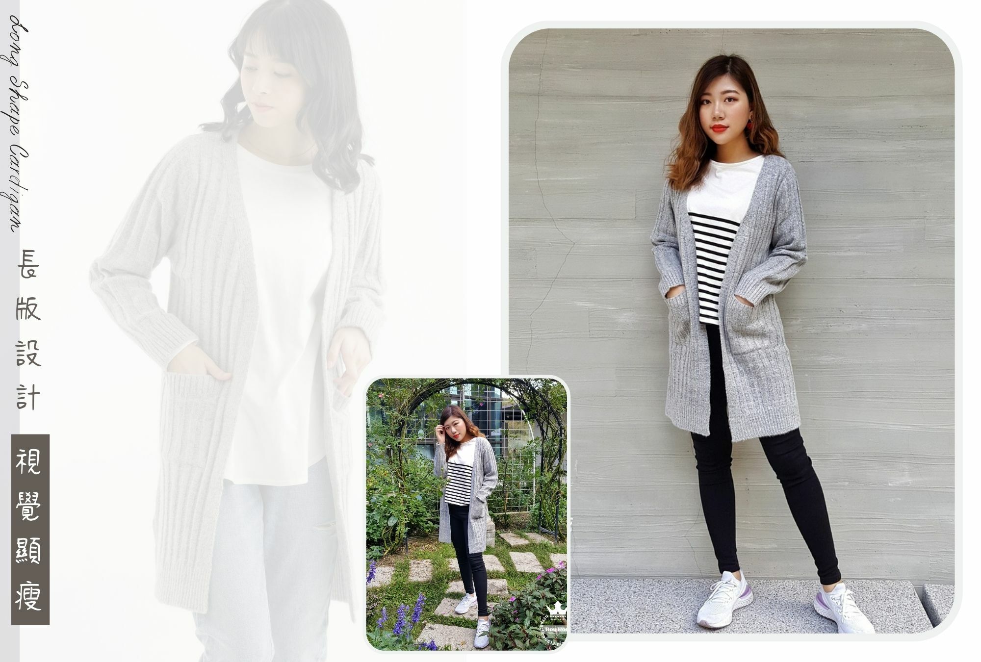 • 使用中針距直紋單層編織,拉長視覺比例就能修飾身型。