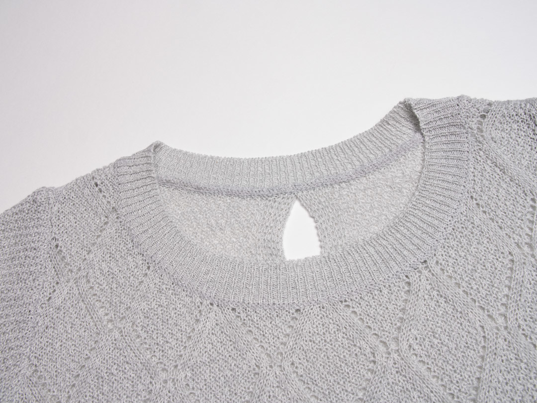 • 前片菱形格狀的小挑洞紋設計,後片均勻的立體紋編織,整體感覺細緻均勻,搭配襯衫或素T,整體穿搭的質感就能加分。