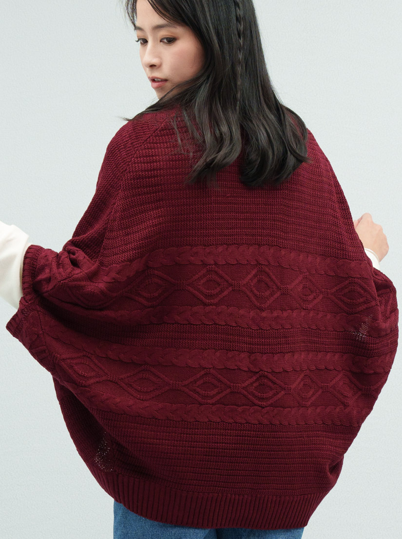 • 中針距單層編織(中等厚度),搭配麻花&菱格紋編織,很有秋冬季節感,穿起來卻不厚重,適合秋冬季節交替穿搭。