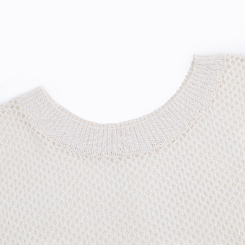 • 類似手編感的菱格狀洞洞紋,是不是很有質感呢!裡面可搭配細肩帶背心或洋裝,就很有造型。