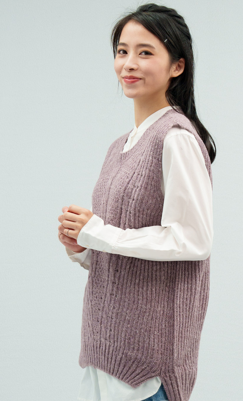 • 選用漸層色調的毛海紗線,針織背心穿起來有秋冬的季節感,卻不顯厚重,舒適棉柔觸感適合台灣秋冬穿搭。