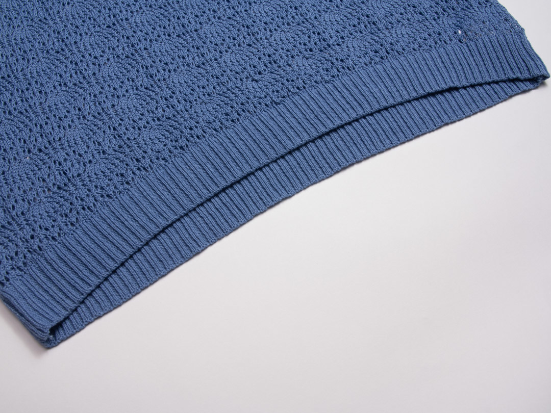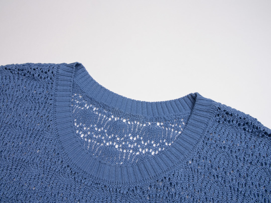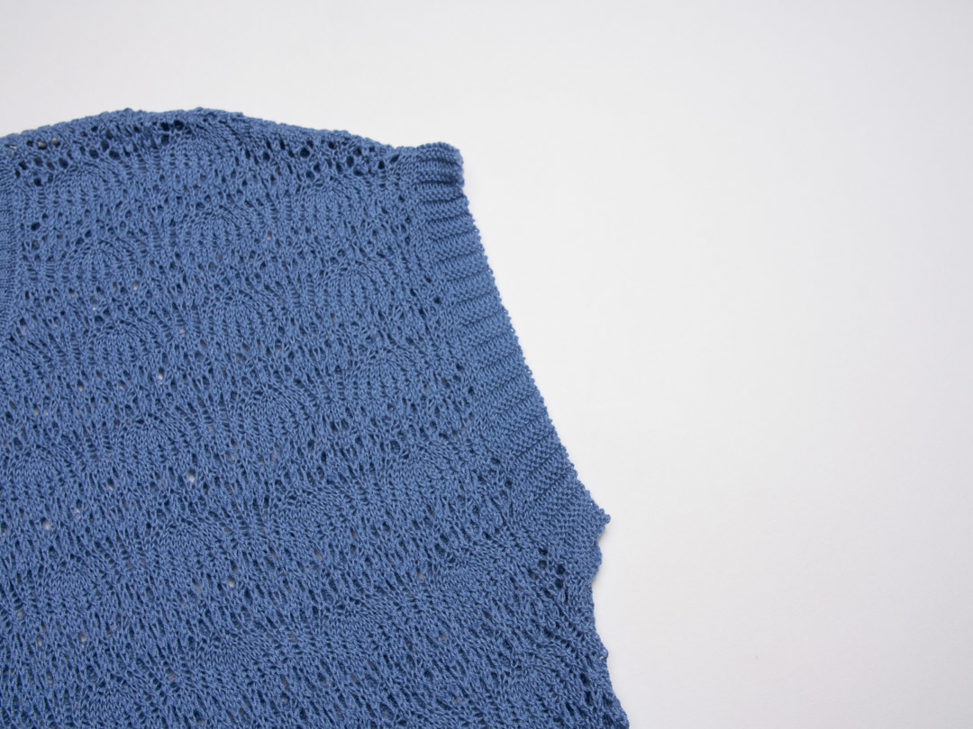 • 類似手鉤的扇形挑洞編織,厚薄度中等,局部簍空設計,就很有質感,裡面可以搭配細肩帶背心或洋裝,簡單套上就能出門。