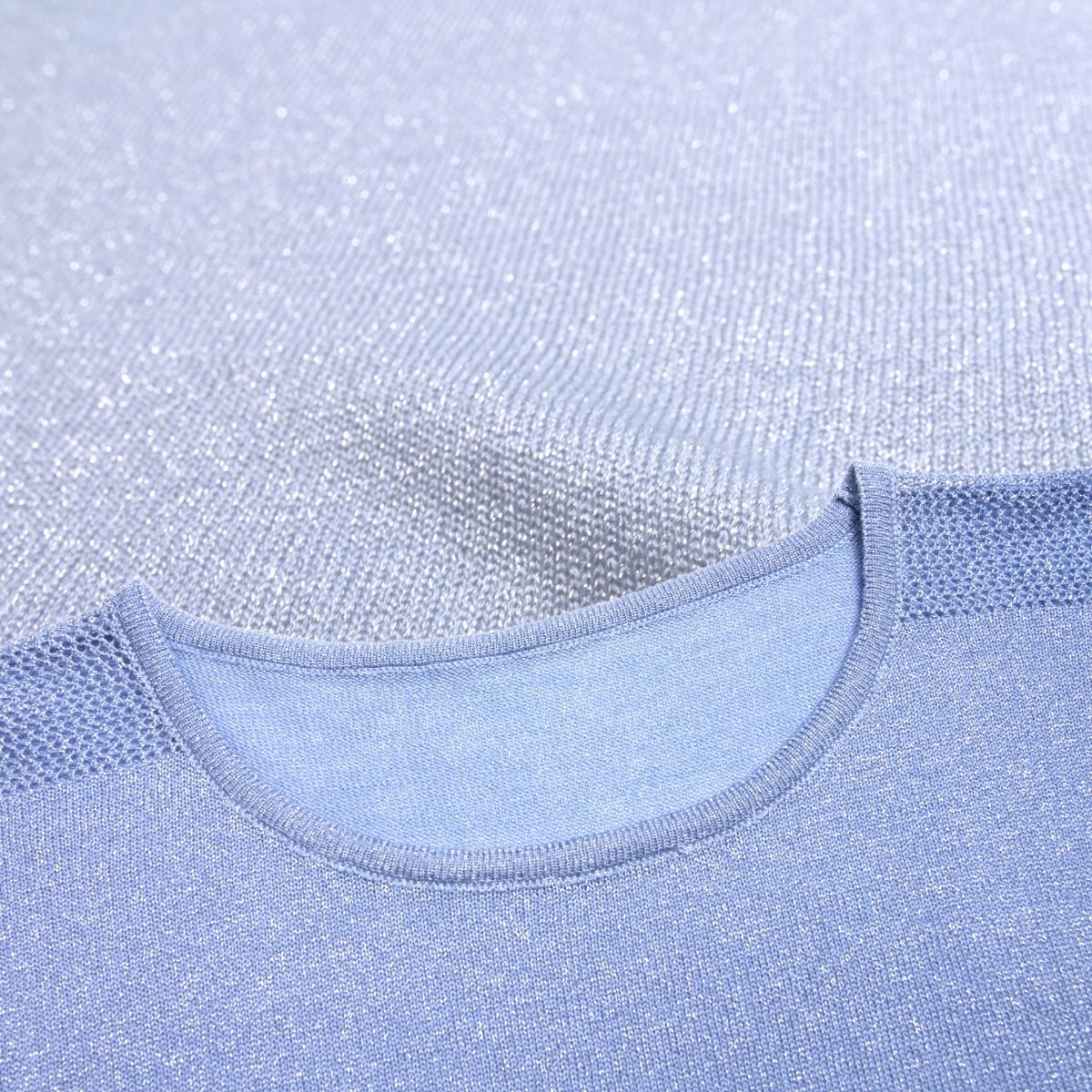 • 運用特殊編織技巧,將細銀蔥編織在衣服表面,而肌膚接觸的內層為嫘縈素材,觸感輕柔舒適,皮膚較敏感的人,也不用擔心,很適合日常穿搭。