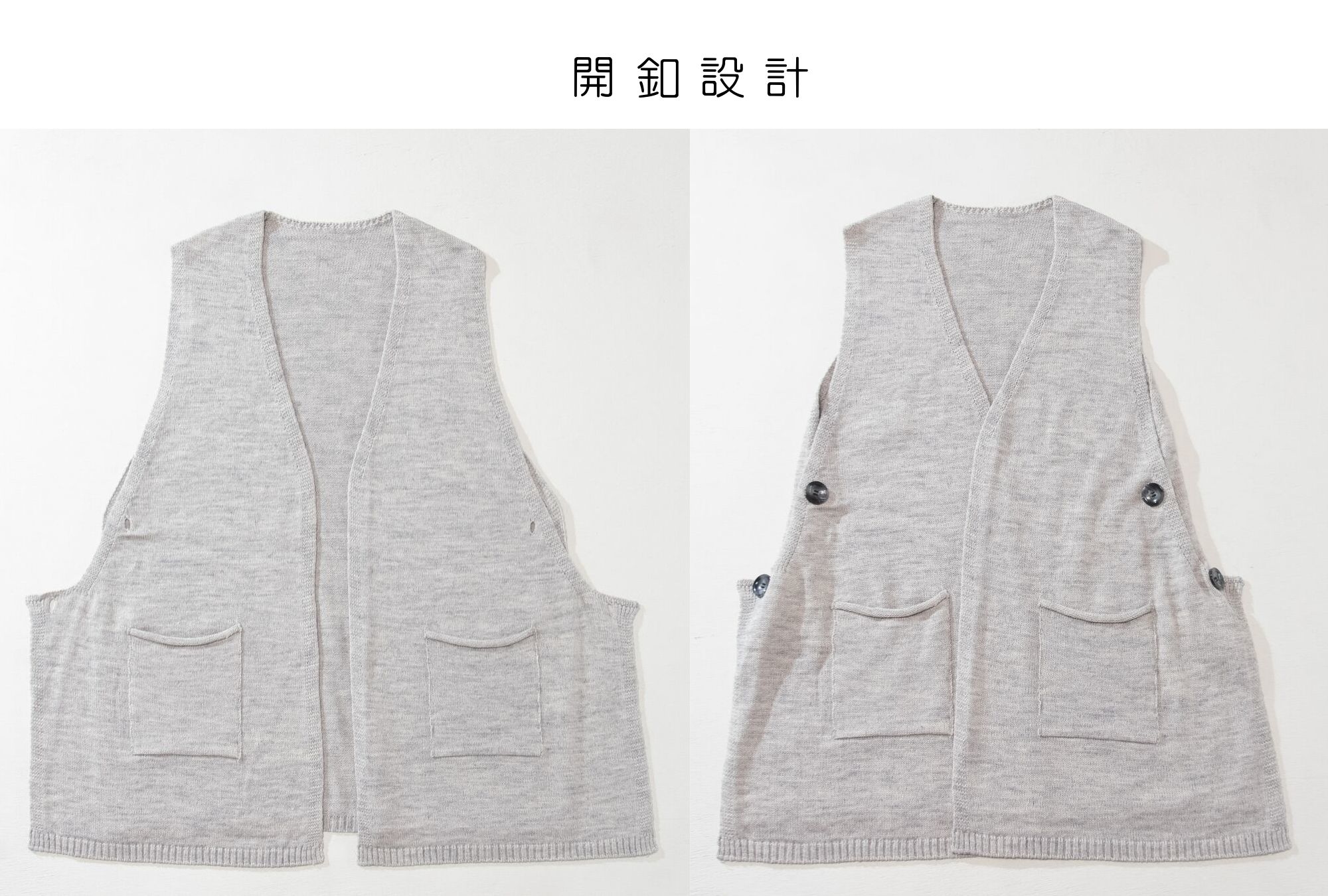 • 使用中針距單層編織,薄度很適合台灣 春.秋.冬. 季節穿搭,領口與掛肩採用無痕的收針設計,讓針織背心更添質感。