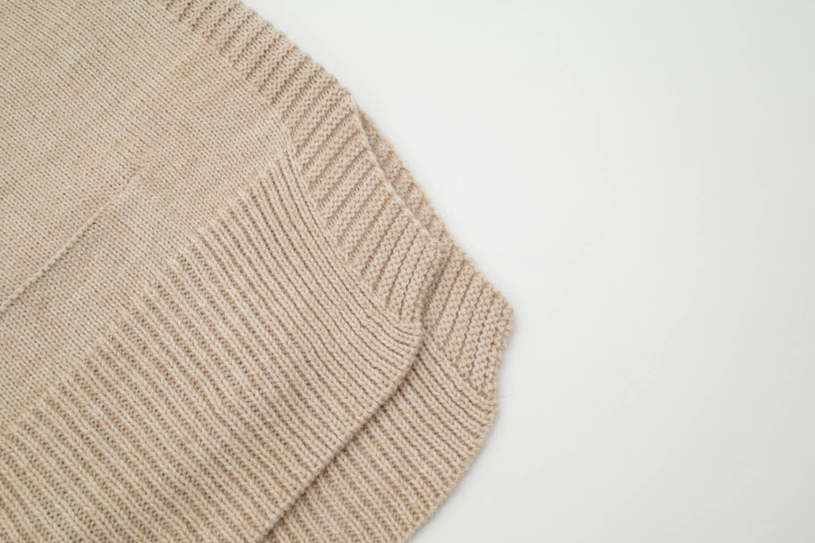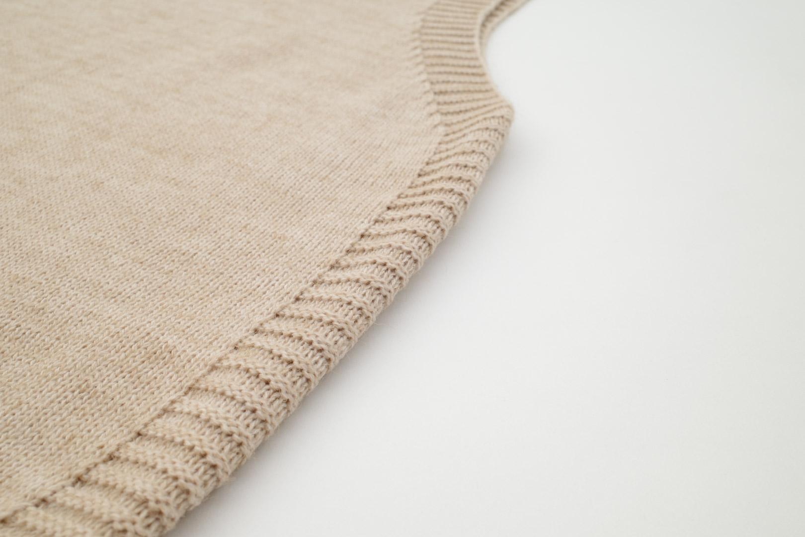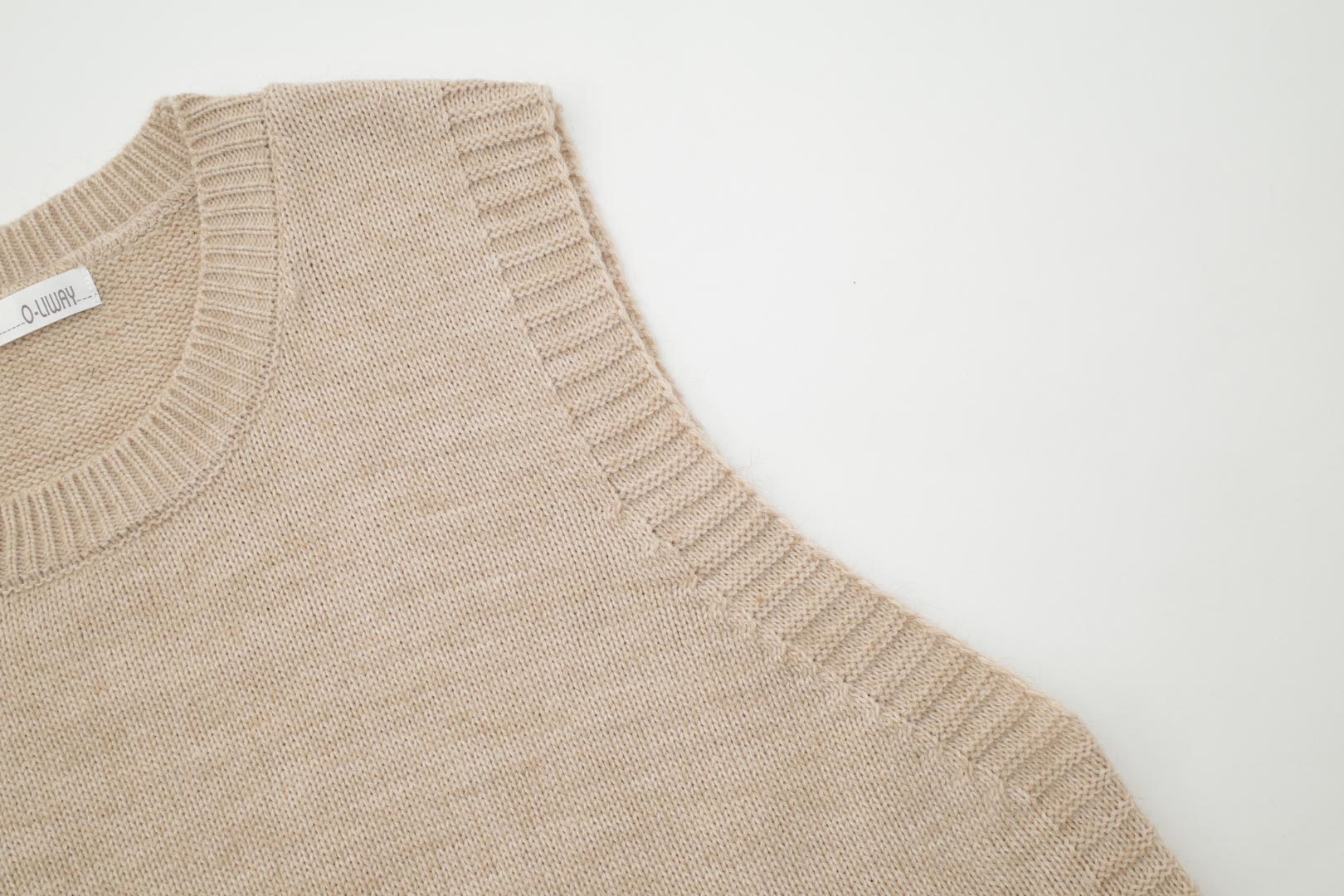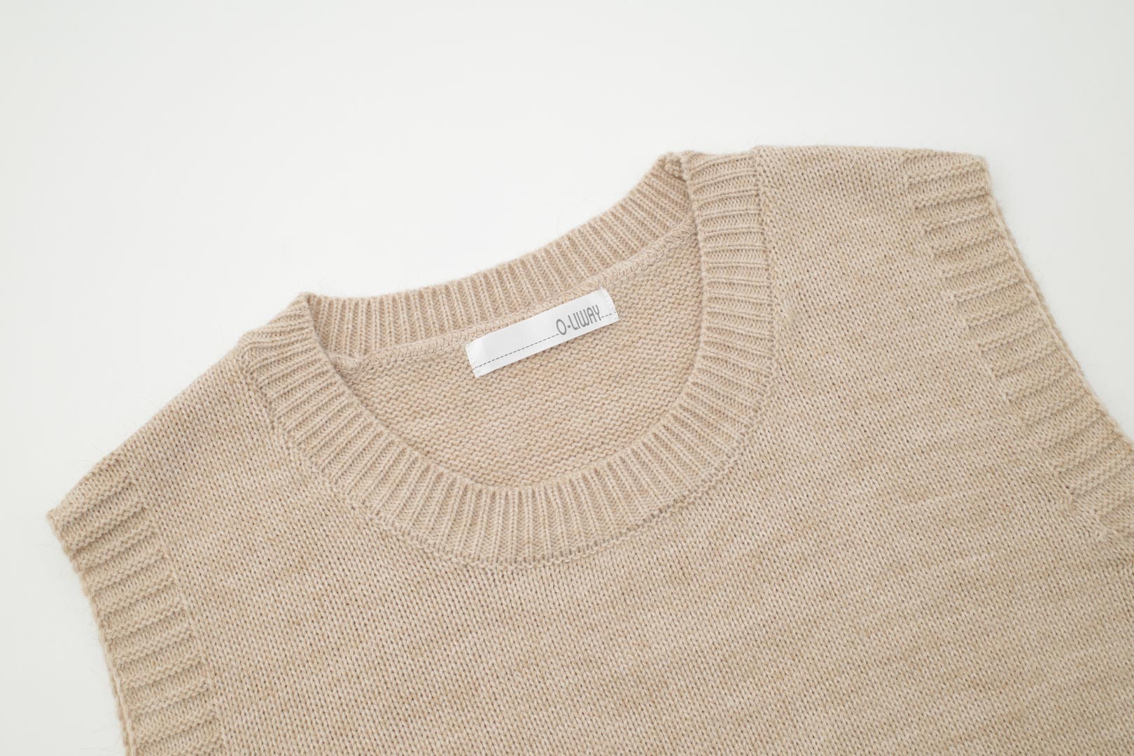• 素材使用蓬鬆感紗線,調緊編織密度,觸感依然細緻,不會扎的針織背心穿起來才舒服。