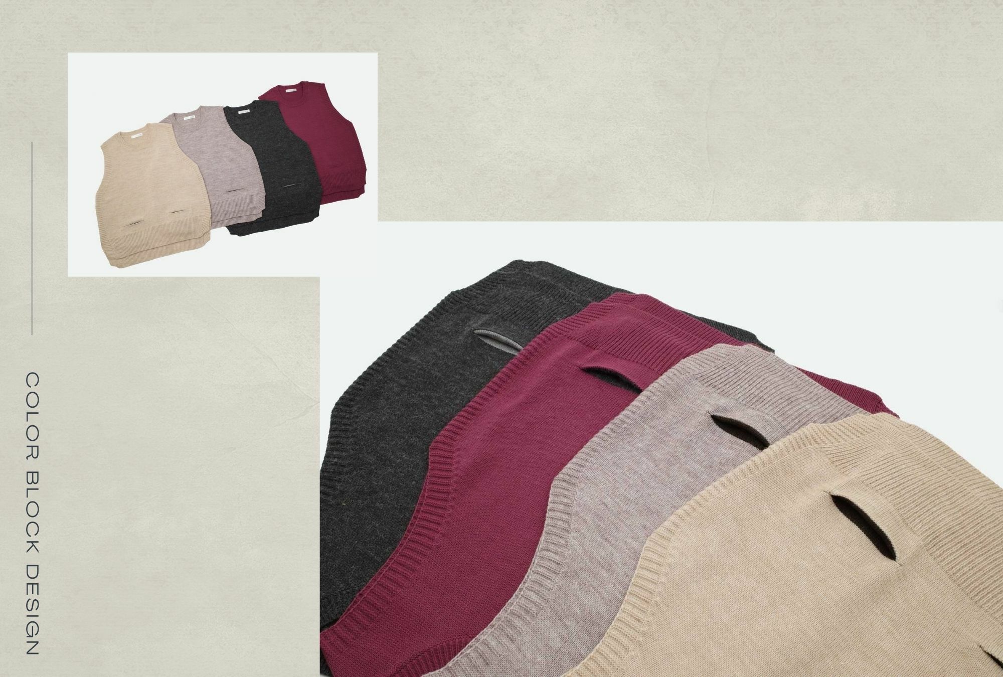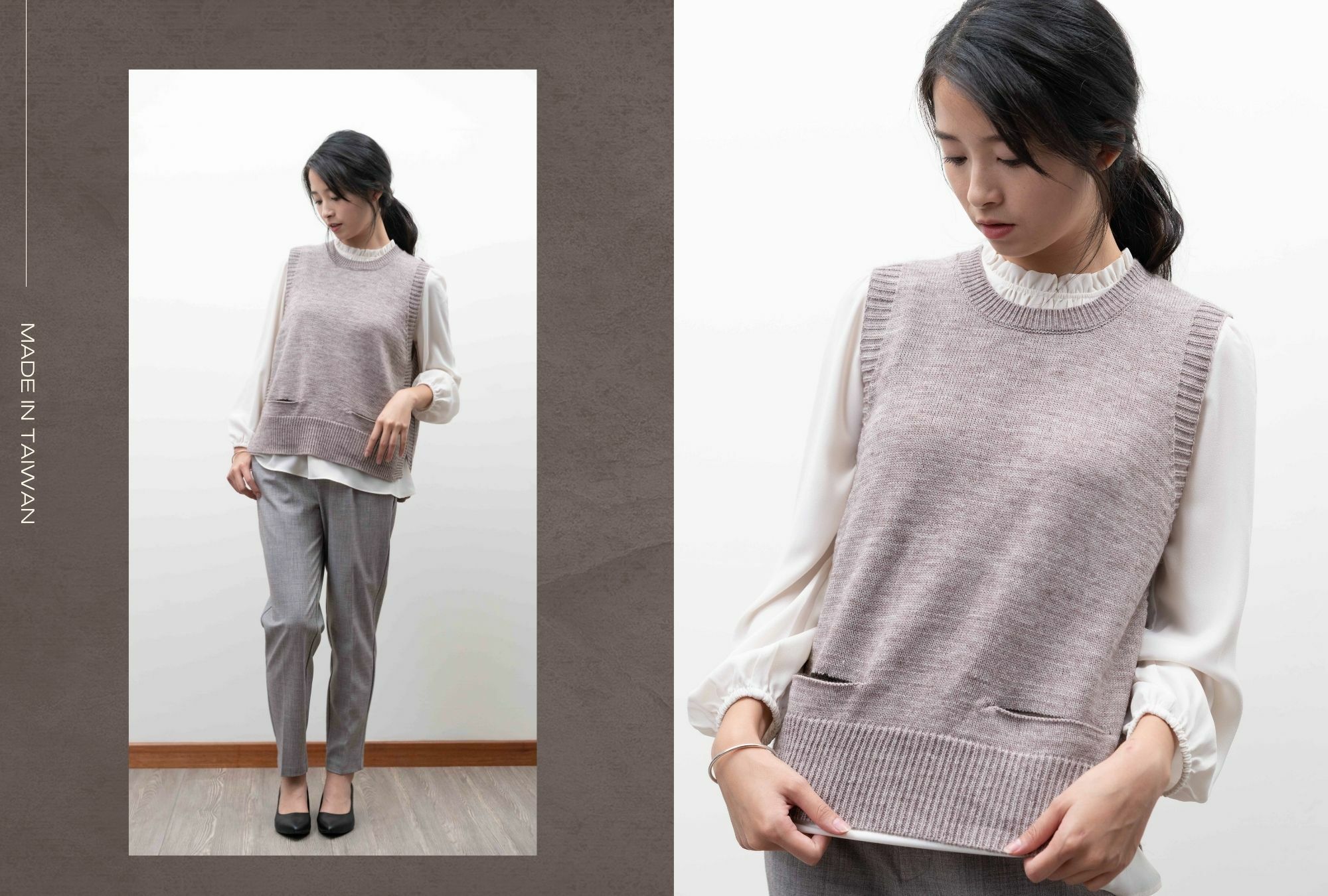 • 中針距單層編織,厚薄度適中,可隨著天氣變化,彈性調整內搭,很適合台灣春.秋.冬穿搭的一款針織背心。