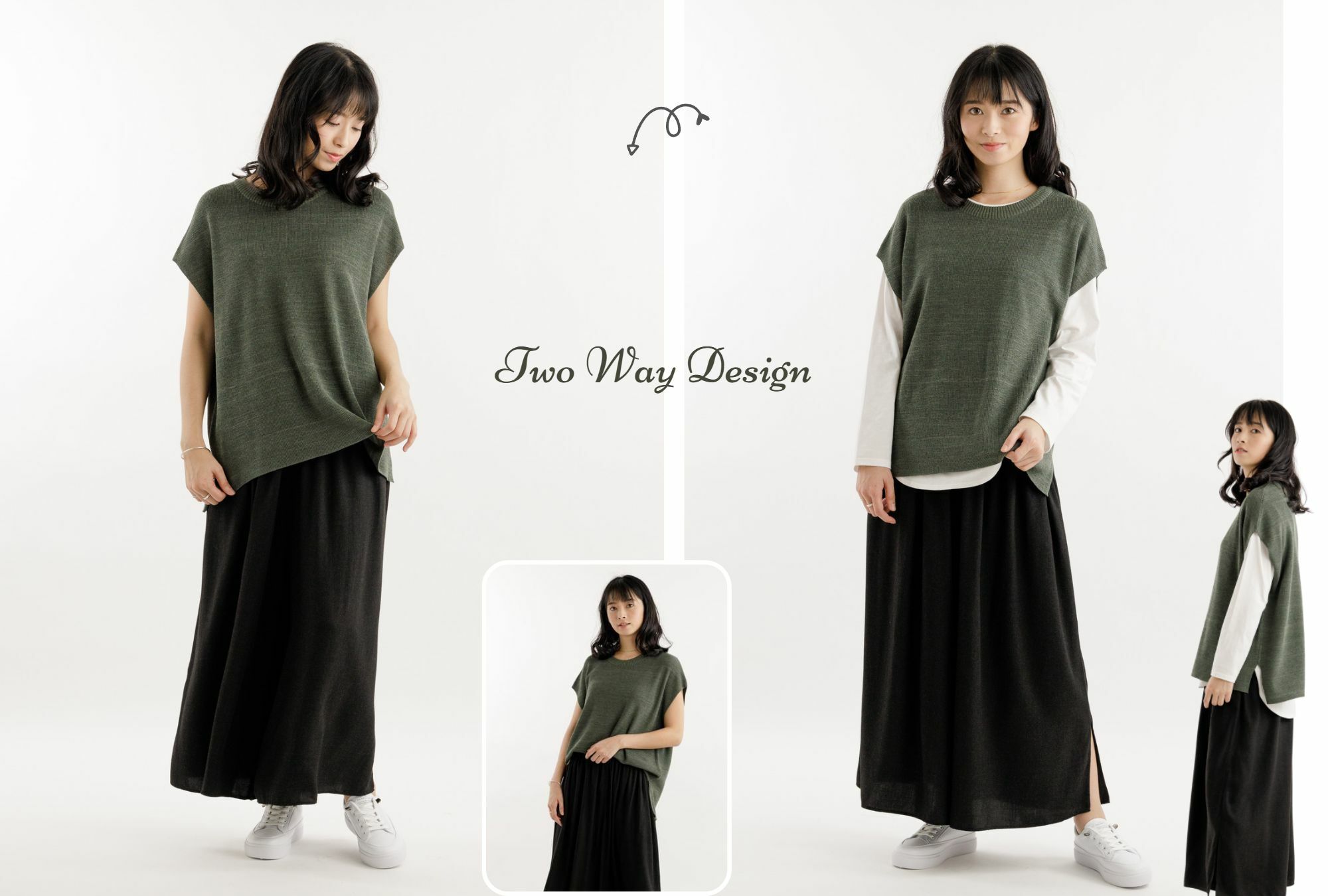 • 前後衣長相差4cm /衣襬擺開岔設計~輕鬆穿搭出層次感,可當針織背心也可以單穿,將衣服扎進去 給人充滿活力的感覺。