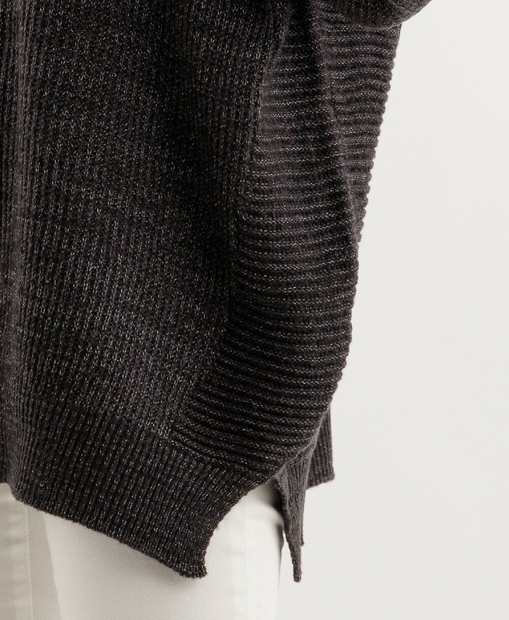 • 衣身中間立體直紋編織,可以拉長視覺比例,搭配兩側漸層橫紋設計,寬版設計依然可以修飾腰部線條。