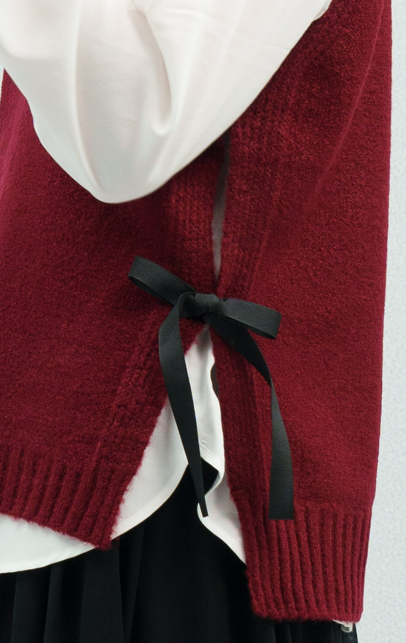 • 兩側大開岔設計,綁上黑色緞帶蝴蝶結,俏麗感十足♪