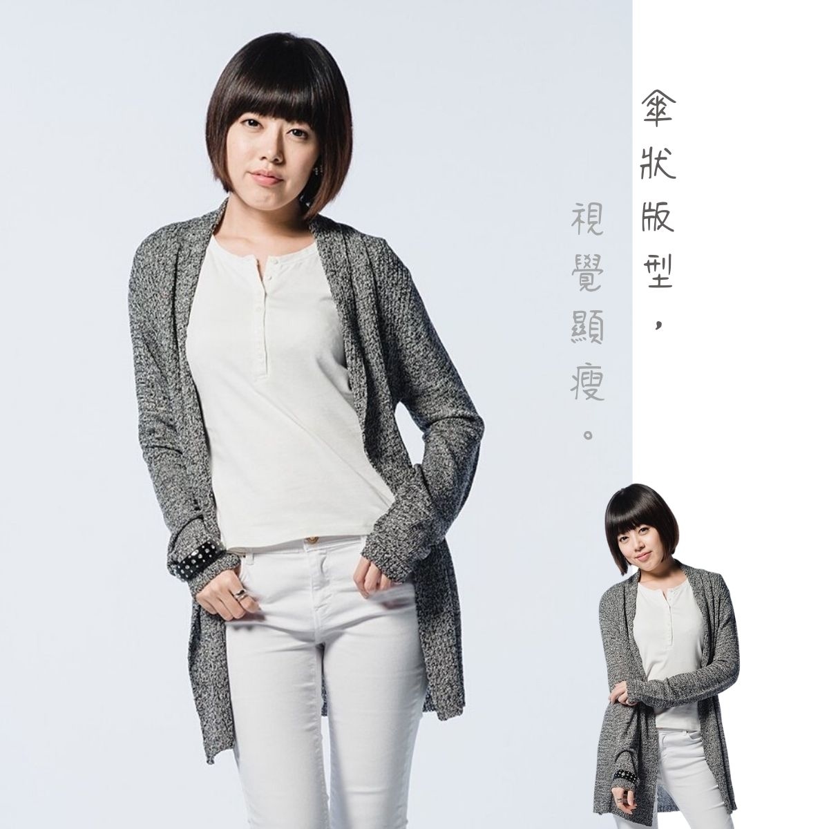 • 衣身上段採用直羅紋設計,下段單層編織,自然的傘狀版型的修飾效果100分。