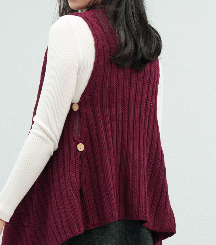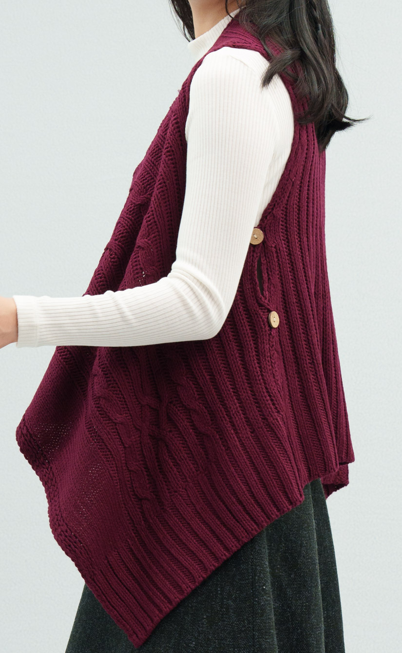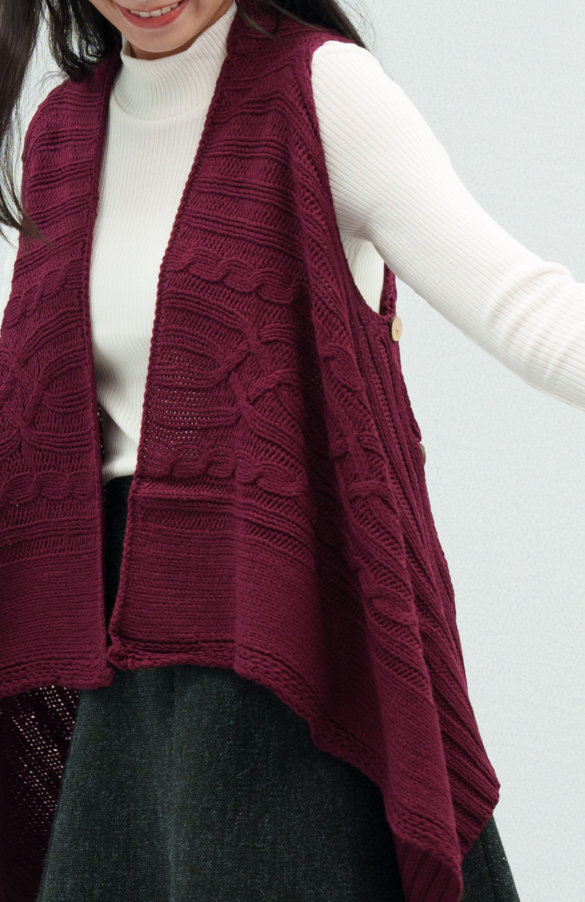 • 披肩式設計~三片拼接而成,中間運用收針編織出掛肩弧度,穿起來自然又隨興。