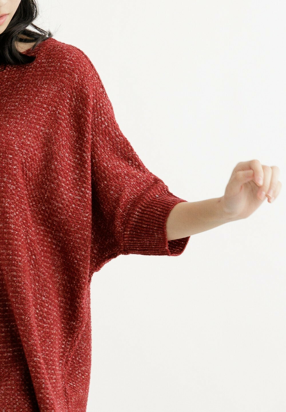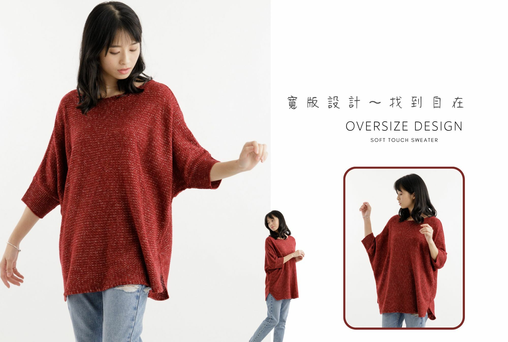 • Oversize 版型設計,搭配垂墜感的紗線,視覺上並不會有膨脹效果,很自然的順修,完美修飾身型。