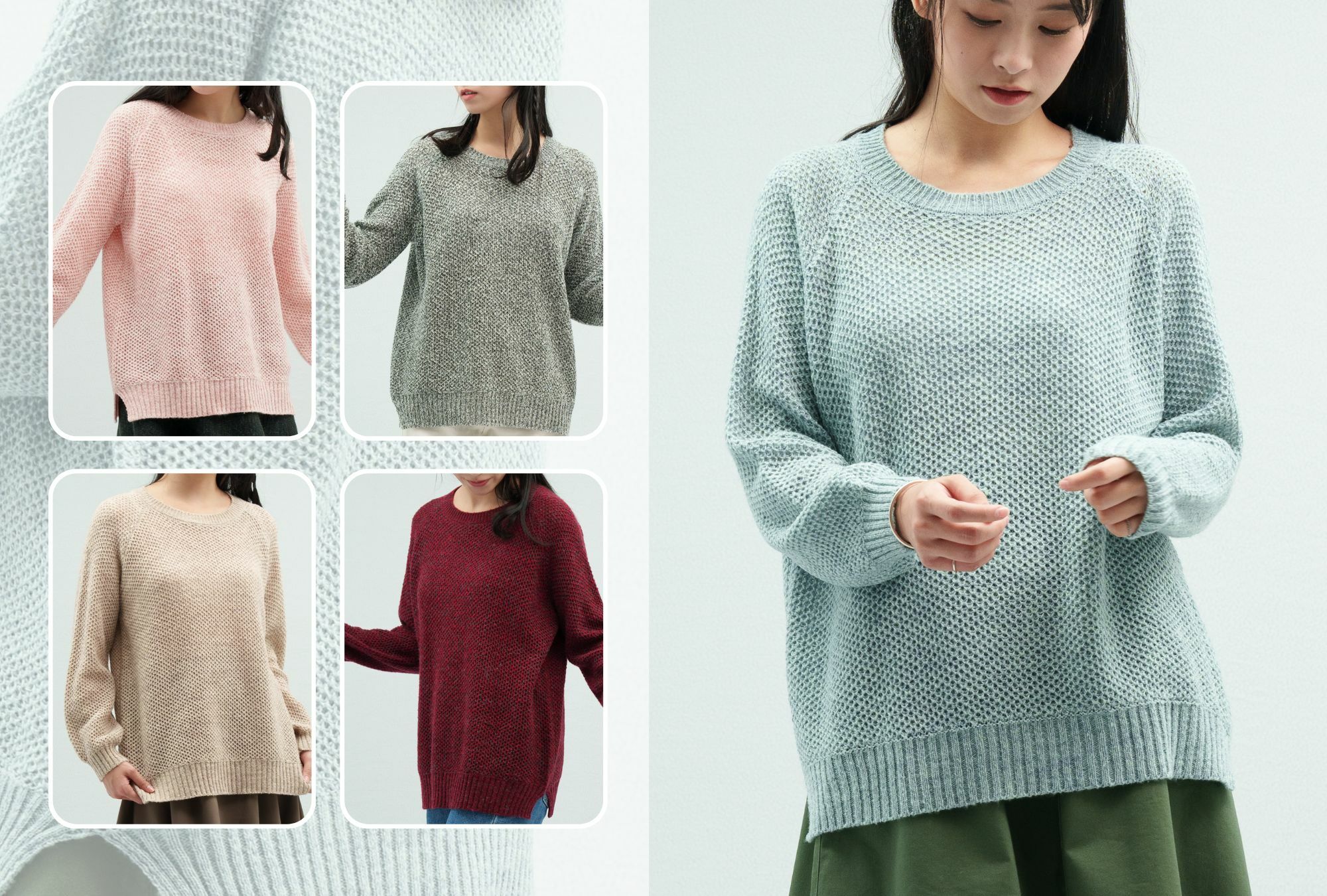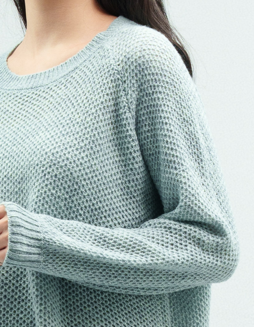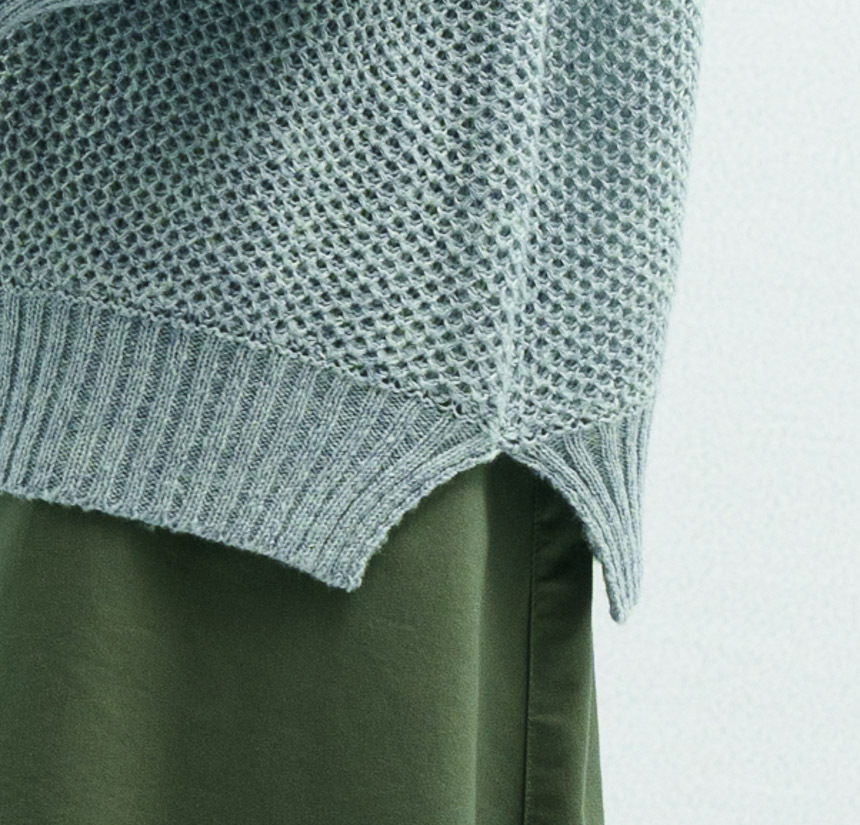• 素材選用輕柔毛海紗與漸層紗線,先將兩種紗線二合一(合股加工)再進行編織,毛衣顏色均勻而有層次,穿起來更有質感。