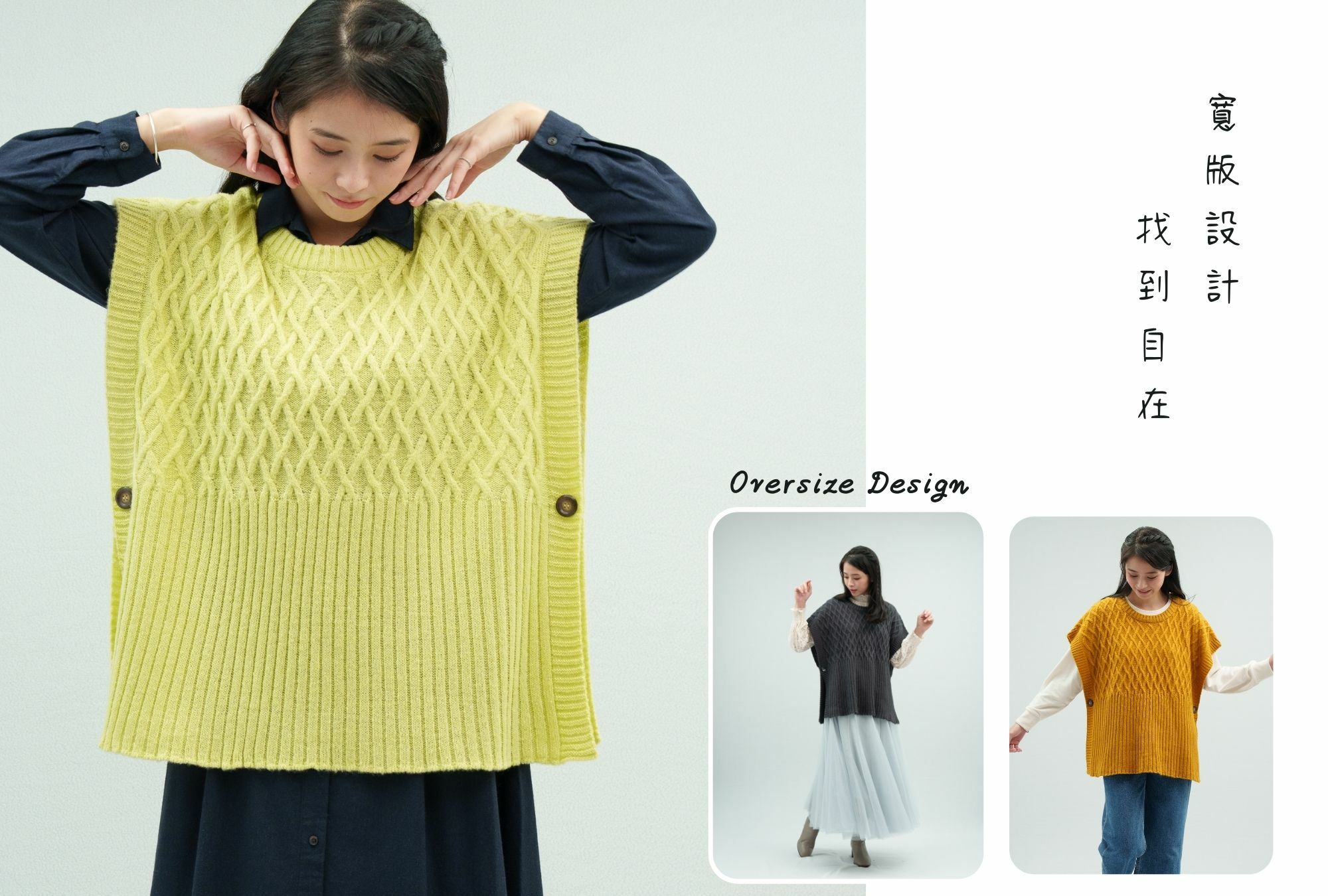 • 中針距單層編織,搭配上下段落立體織紋變化,毛衣看似稍微有點厚度~穿起來卻不厚重,適合台灣秋.冬.春.跨季節穿搭。