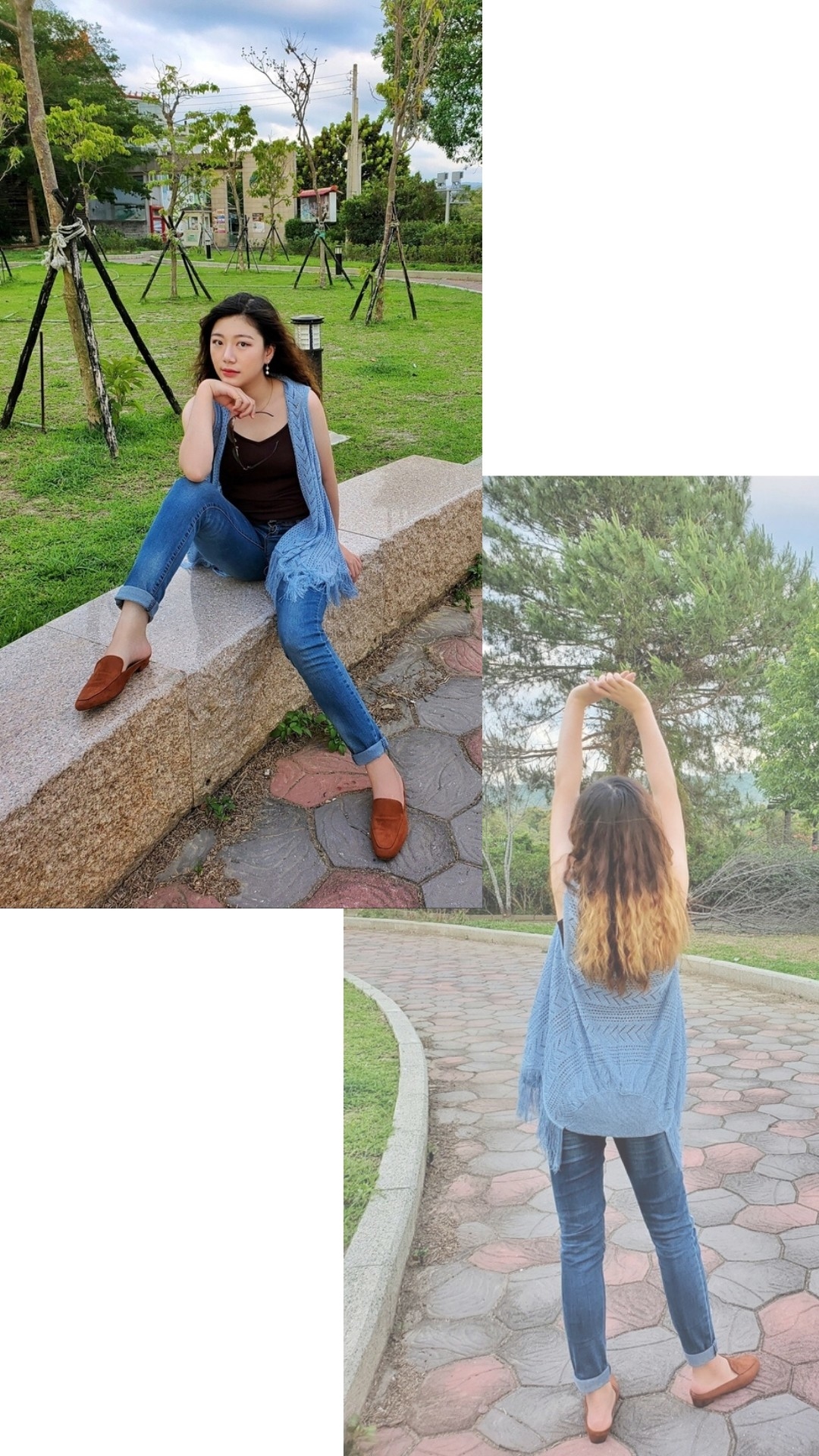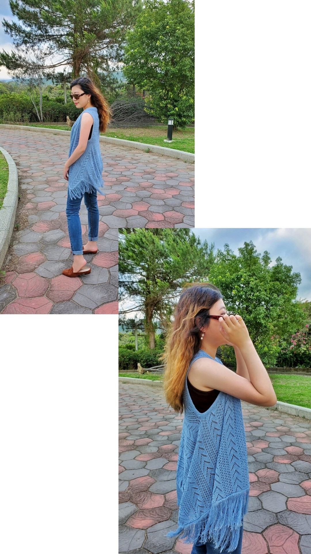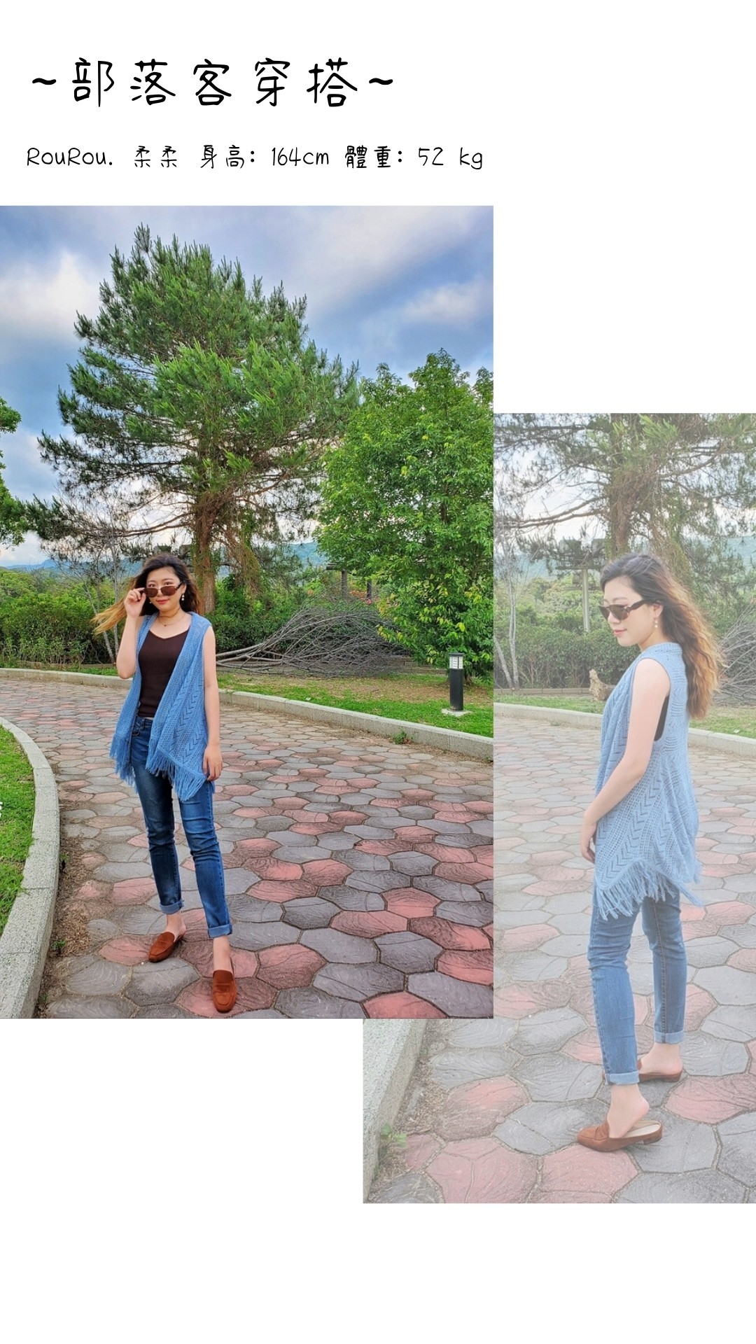 • 針織背心長度79cm 剛好可以蓋住臀部,流蘇的設計更讓臀部被修飾,搭配素雅的洋裝或內搭就很有質感。