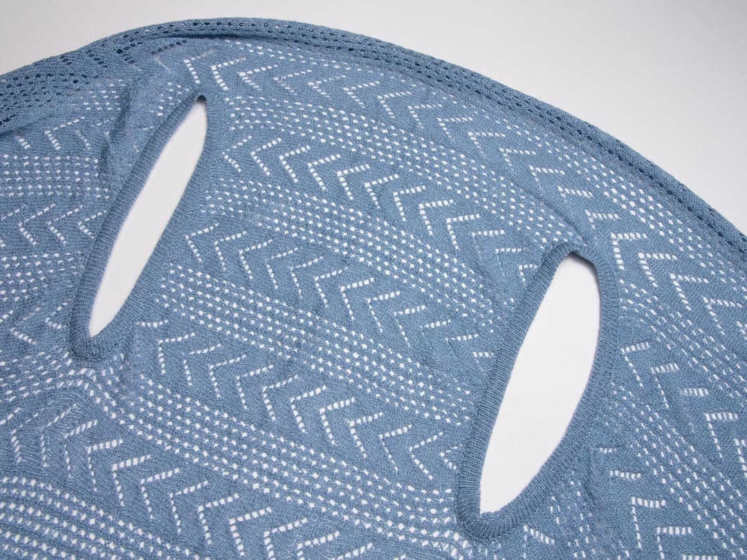 • 中針距單層編織,厚薄度中等,衣身蕾絲洞洞紋排列設計,簡單套上就很有質感。