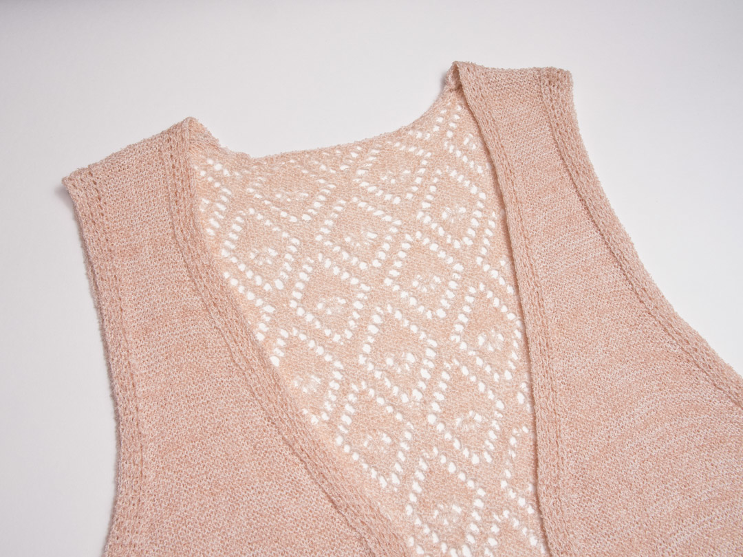 • 背面衣襬採圓弧度設計,開襟背心版型變活潑,日常穿搭更有層次。
