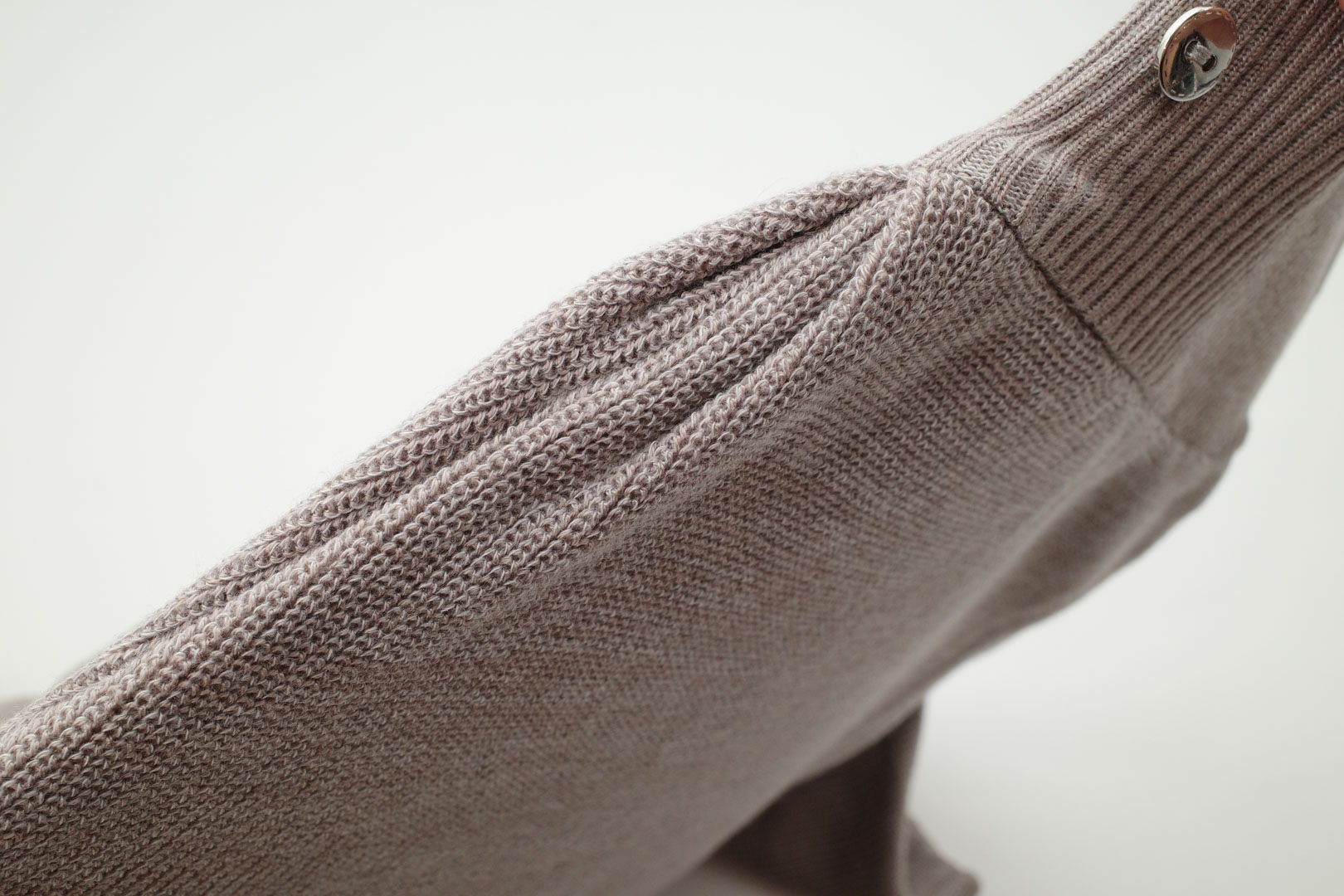 •使用細針距(12針)雙層吊目編織,有別於一般細針針織衫大多使用單層編織,我們讓衣服外觀更立體而不會厚重,近年台灣秋冬偏暖,這個厚薄度,非常適合陪伴妳整個秋冬。