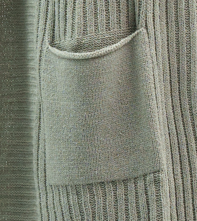 • 彈性羅紋編織設計,經過多次編織密度微調~找到平衡,開襟背心穿起來舒適而不緊繃。