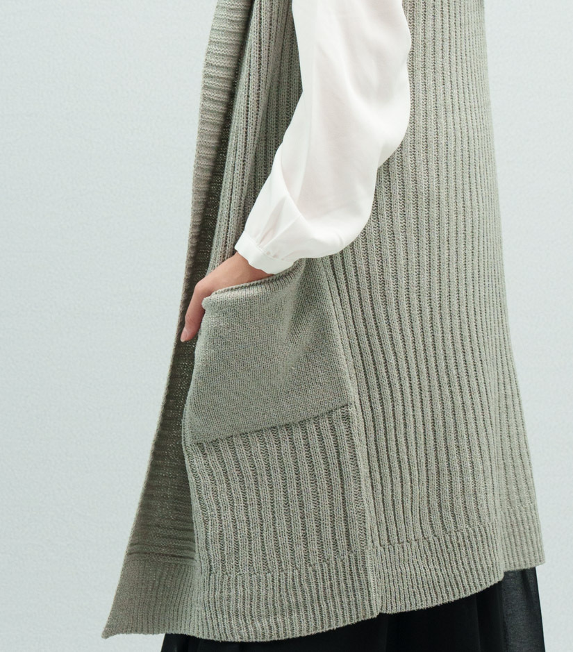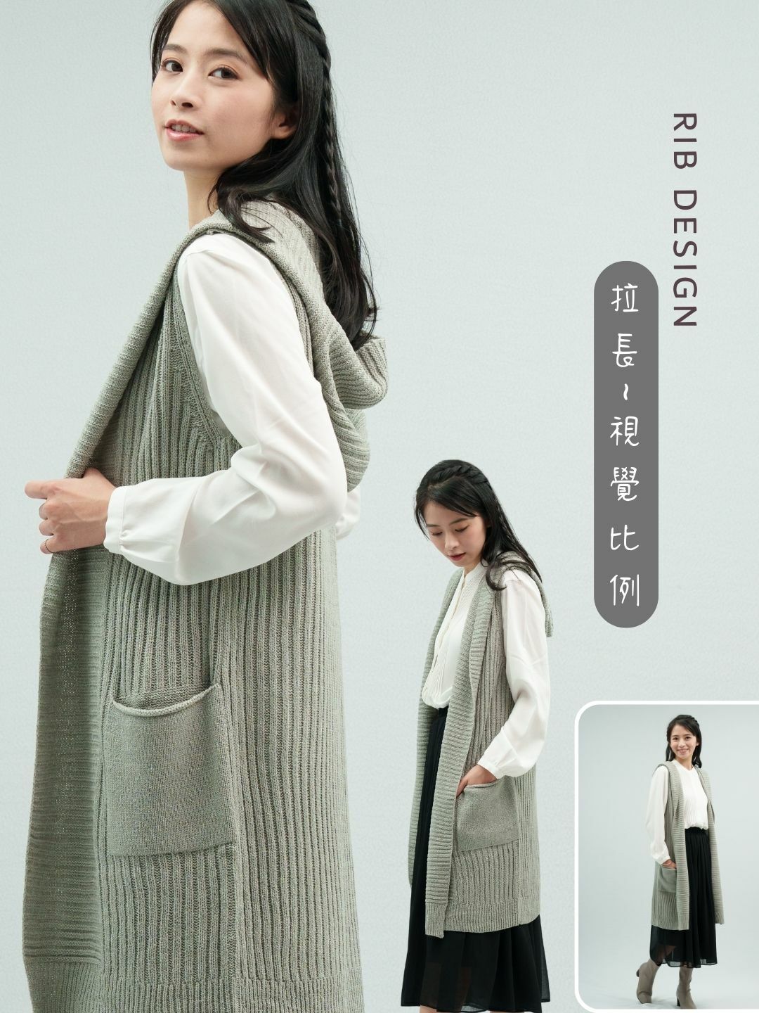 • 長版設計的開襟背心,穿搭時可以拉長視覺比例,身形看起來更顯修長。