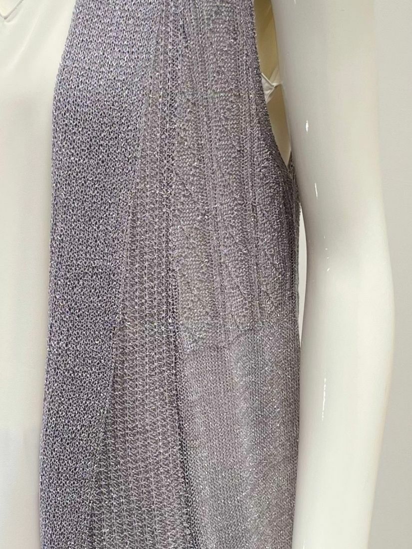 • 衣身中針距單層編織,穿起來極輕盈而微微透光,搭配直紋+菱格織紋設計,展現針織細膩高質感。