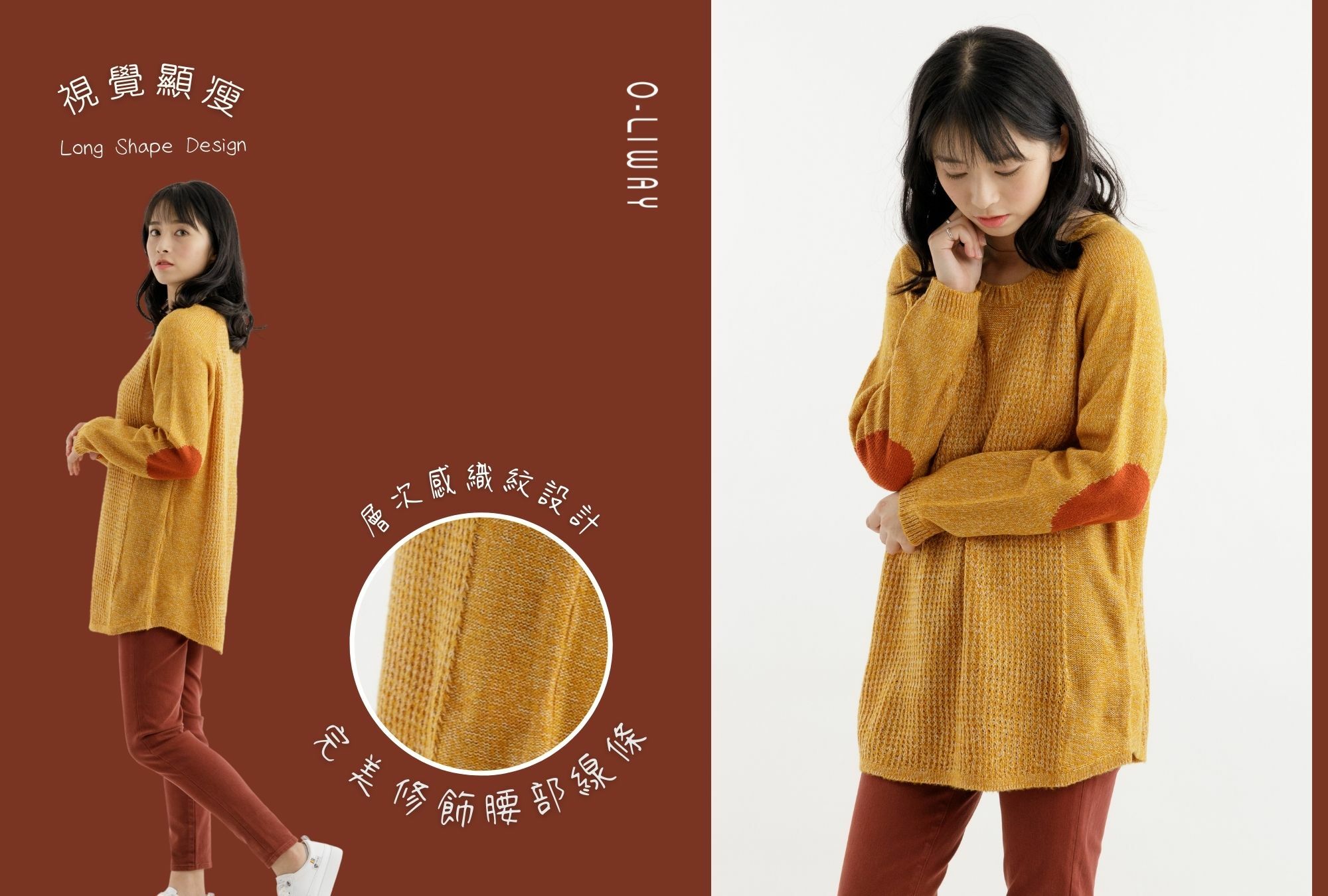 • A-LINE 版型設計,下擺加寬6CM後,搭配有垂墜感的毛海紗線,自然順修身型,立即視覺顯瘦。