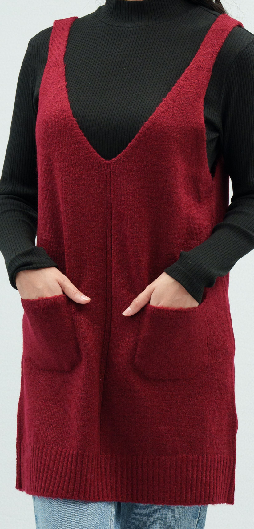 • 前後V領都採用無痕的編織設計,領口無接縫,簡潔又俐落~質感大加分。