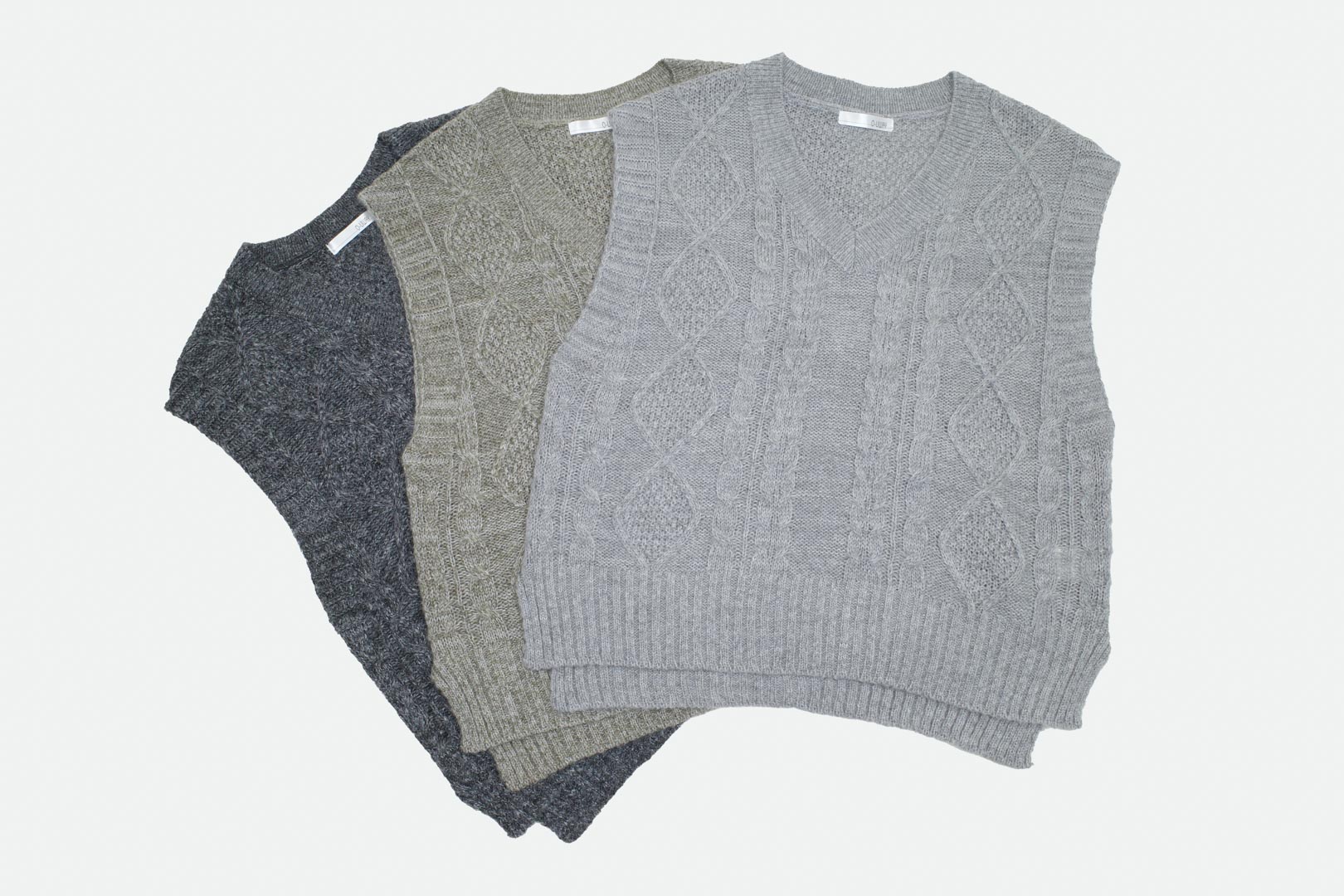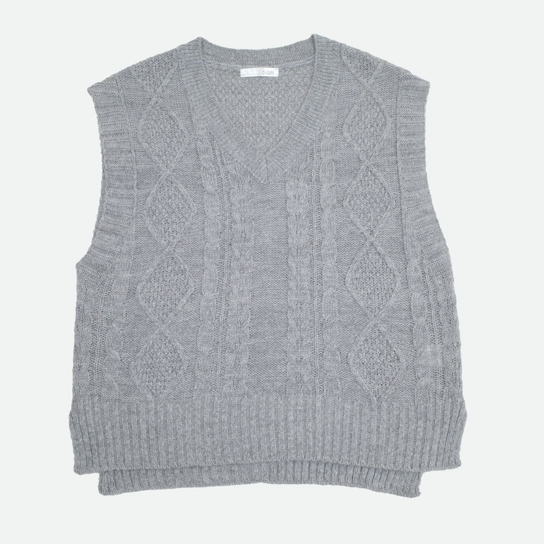 • 運用菱形格紋搭配細麻花織紋,立體感的編織設計,增添背心質感。