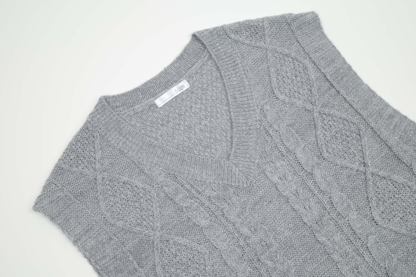 • 選用雙色效果的的毛海紗線,背心外觀有秋冬的季節感,卻不厚重,觸感舒適,很適合台灣秋冬穿搭。