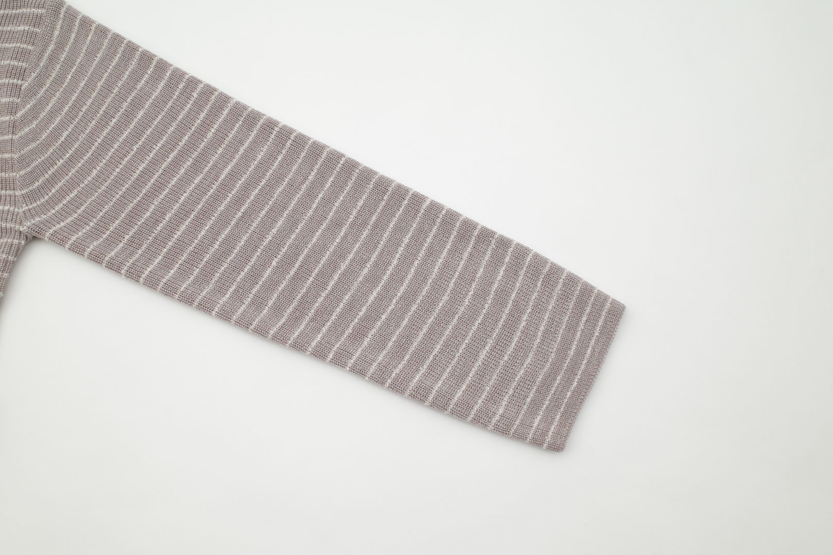 •使用細針距(12針)雙層吊目編織,有別於一般細針針織衫大多使用單層編織,我們讓衣服外觀更立體而不會厚重,近年台灣秋冬偏暖,這個厚薄度,非常適合陪伴妳整個秋冬。