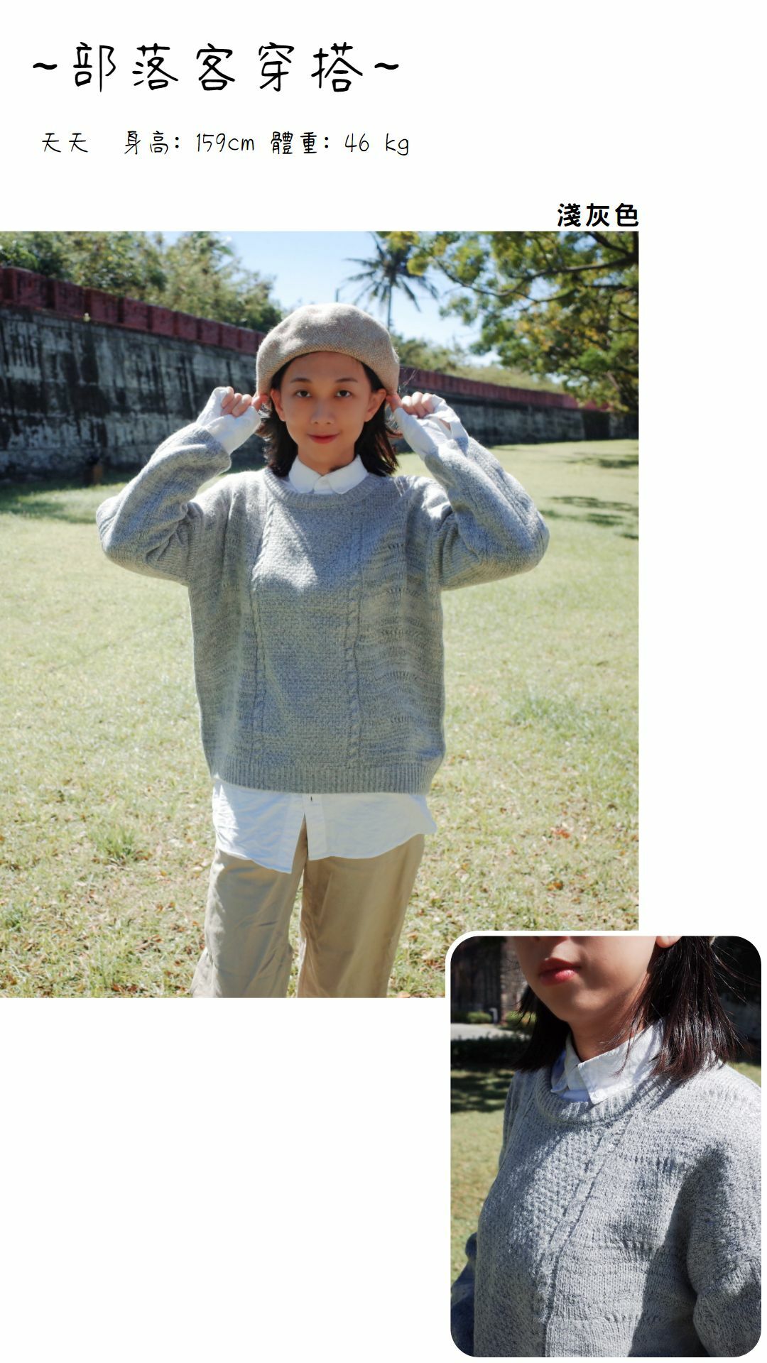 • OverSize 寬版設計,衣身兩條麻花織紋拉長視覺比例,袖寬採正常寬度設計,穿著上就不太會顯膨。