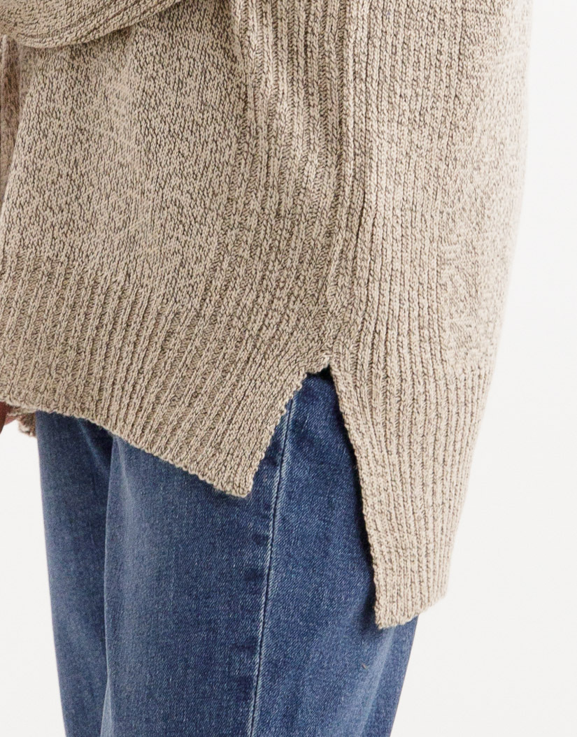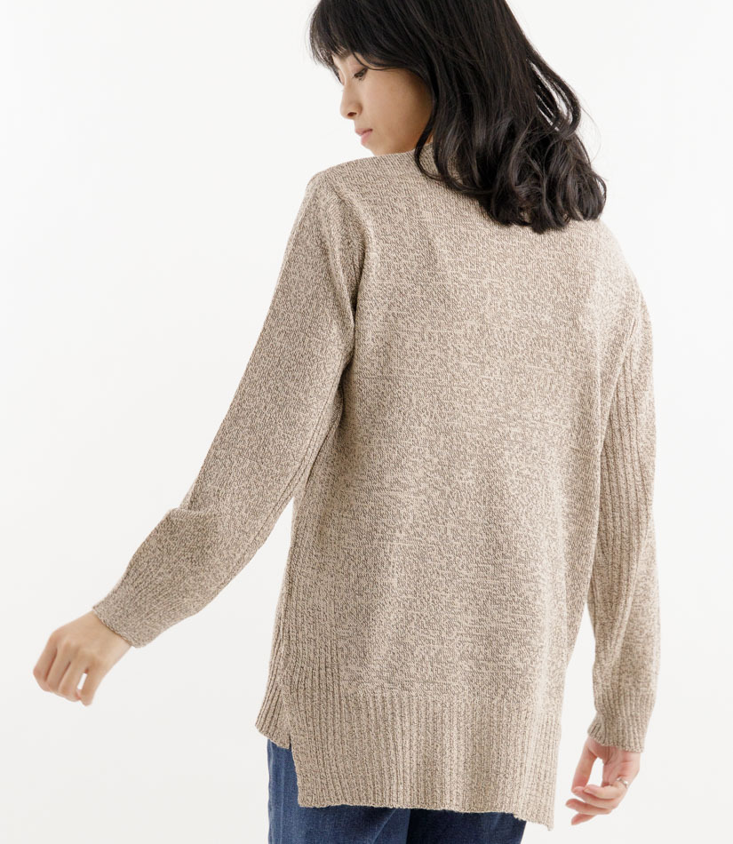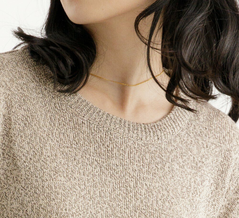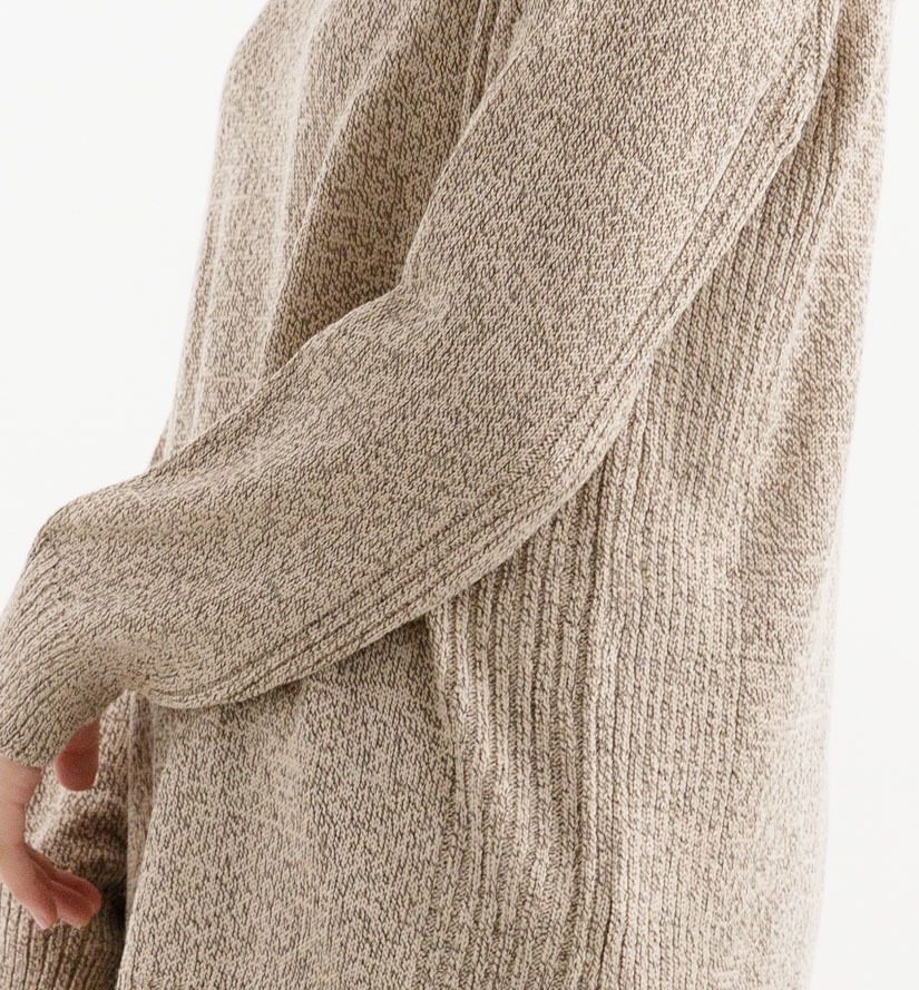 • 選用15%羊毛紗線,融入一條很細的黑色彈性紗,觸感舒適不會扎人,毛衣外觀呈現均勻自然的深淺色,整個高級感。